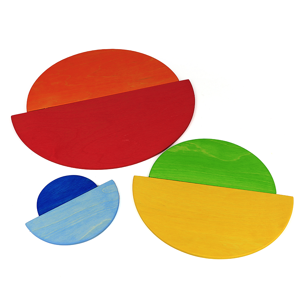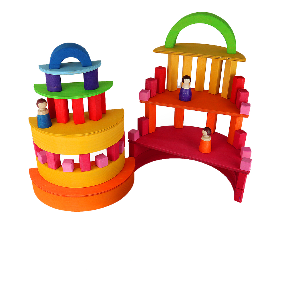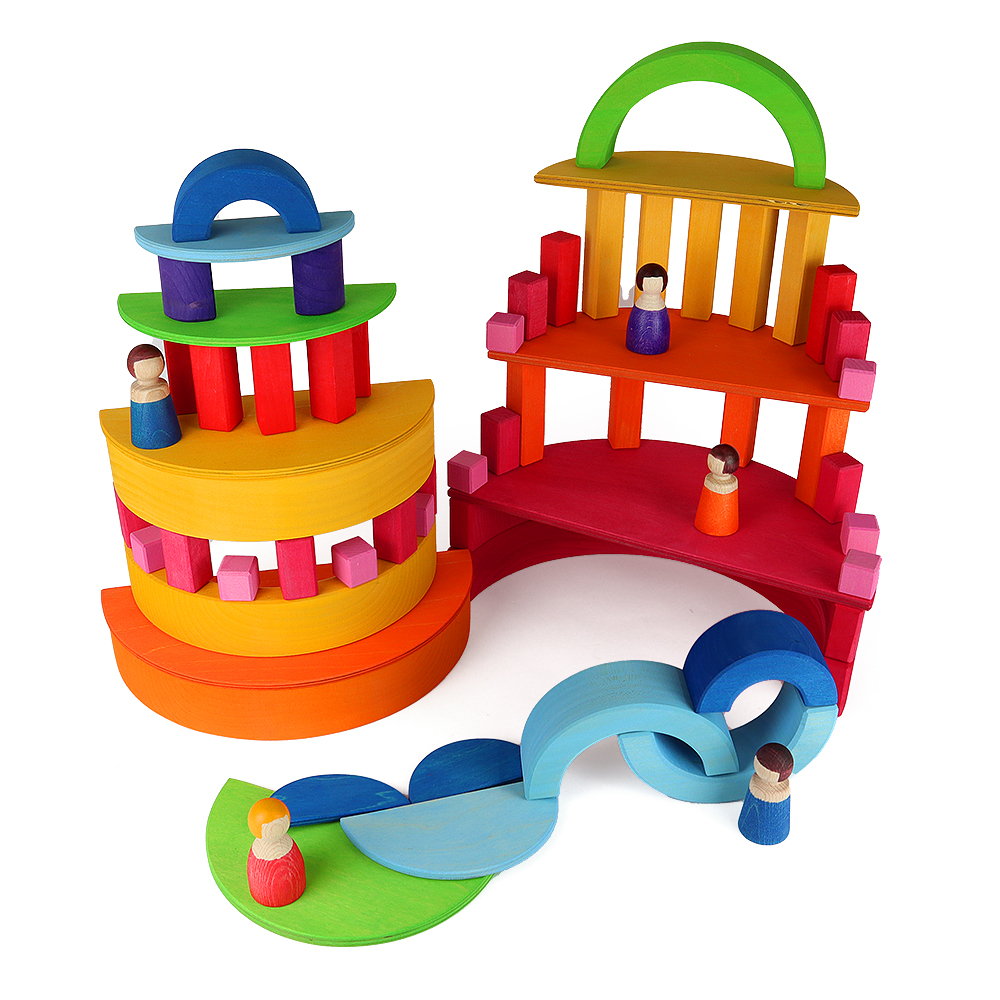 Bauspiel colourful rainbow plates. An open ended play set for use on its own or in combination with rainbow blocks.
