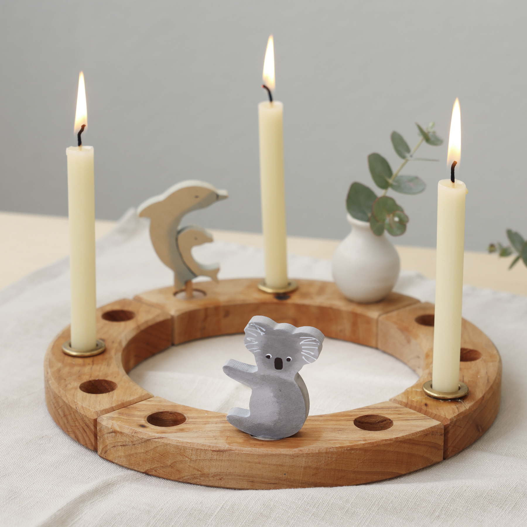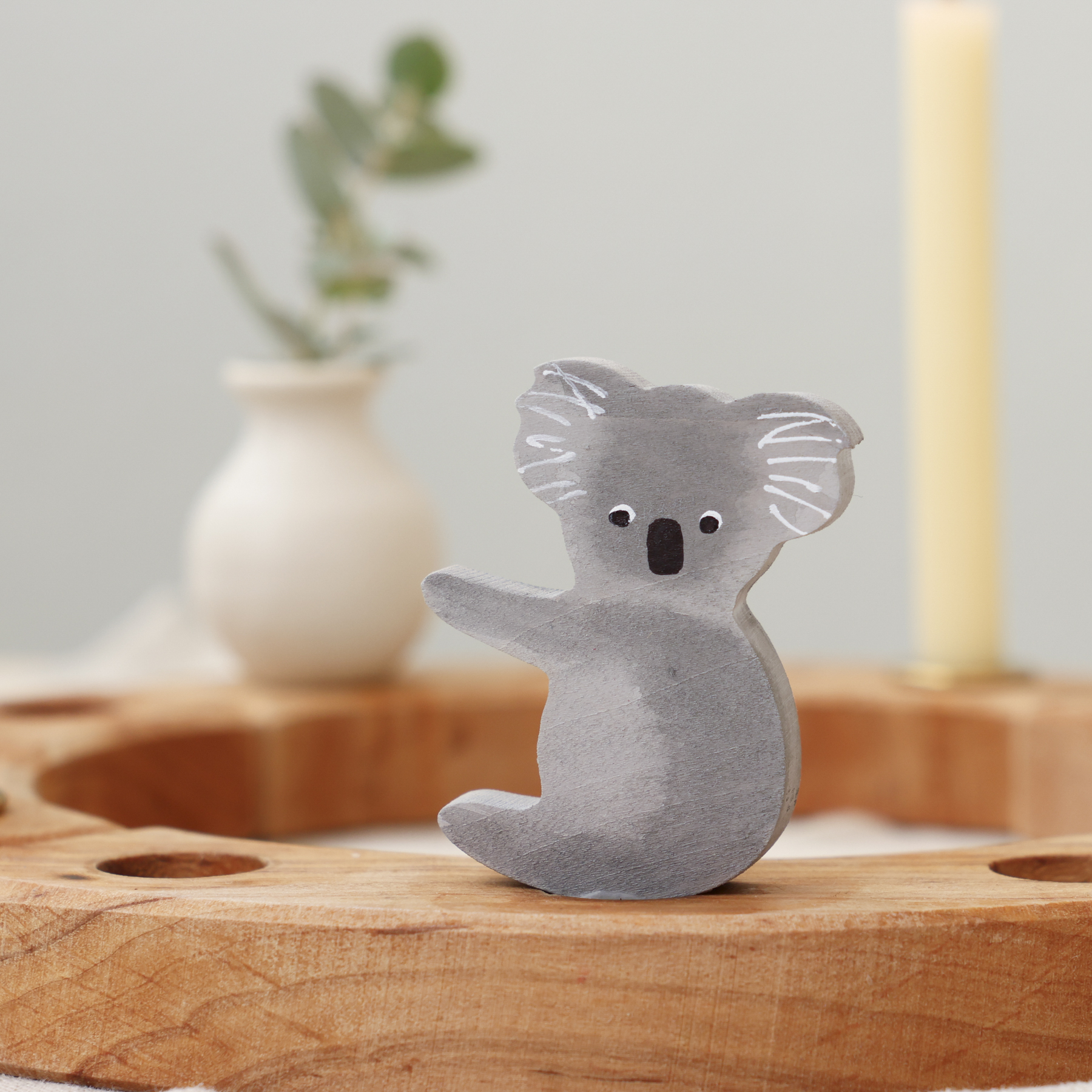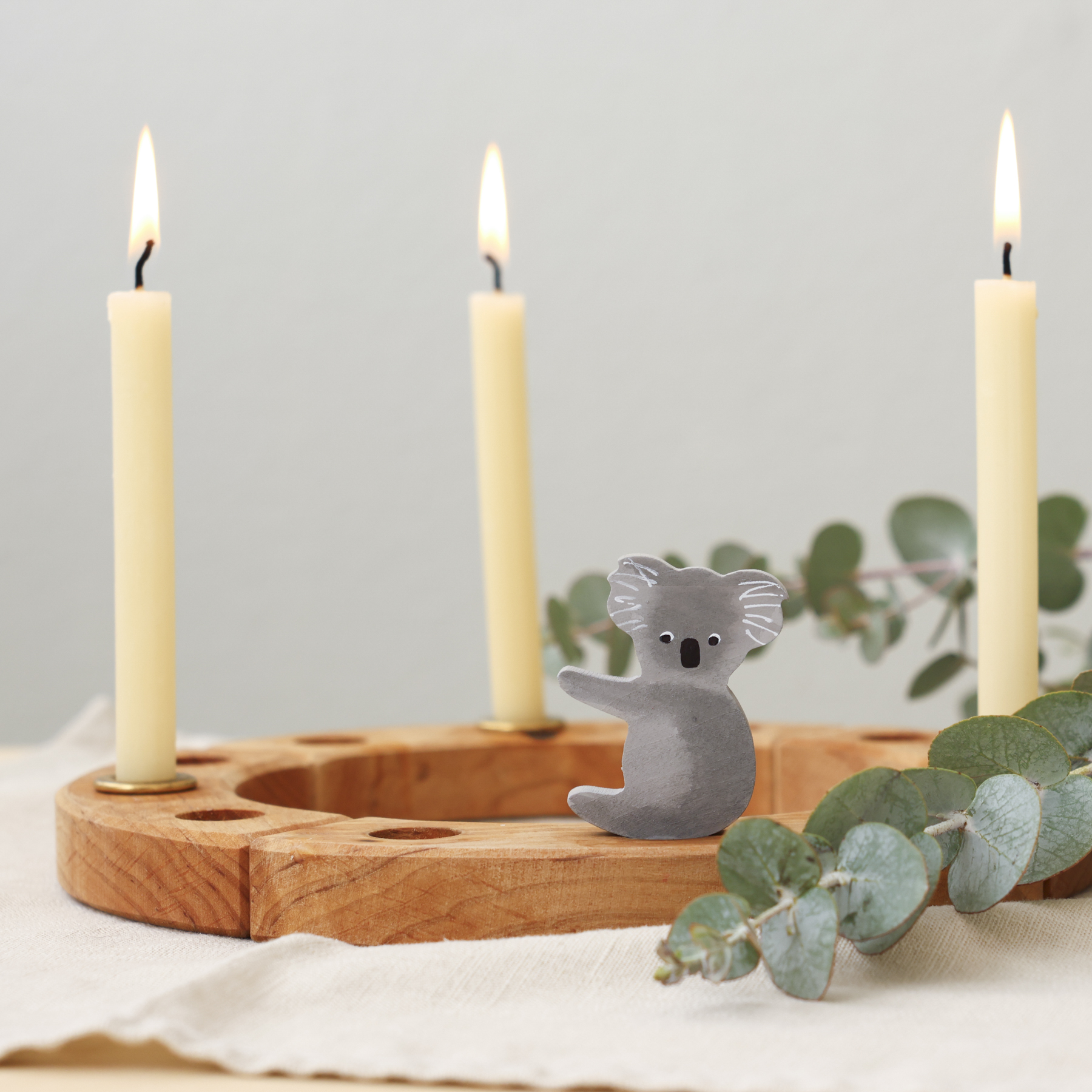 The Grimm’s decorative figure Koala has been born out of an idea from Melissa to celebrate 21 years of Grimm’s in Australia. Earlier this year Melissa spoke with Elke at the Nurnberg Toyfair about a decoration to celebrate the 21 years with something uniquely Australian to mark the milestone. Elke was kind enough to take on the task and what has been born out of this discussion comes to fruition with the lovely hand painted koala.