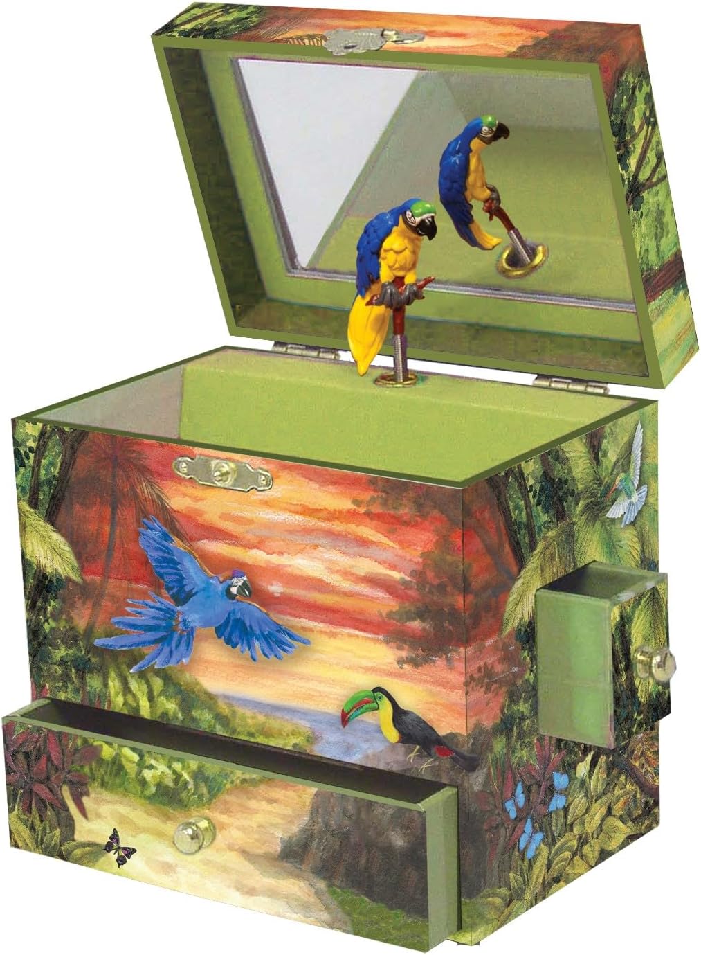 This stunning Fanciful Feathers Musical Jewelry Box is more than just a storage solution; it’s a beautifully crafted piece of art that brings joy and imagination to life. Featuring intricate details, stylish gold latches, and a whimsical parrot that spins to the melody of Hungarian Dance No. 5, this music box is sure to enchant anyone who receives it. Durable and thoughtfully designed, it’s built to last and inspire cherished memories for years to come.