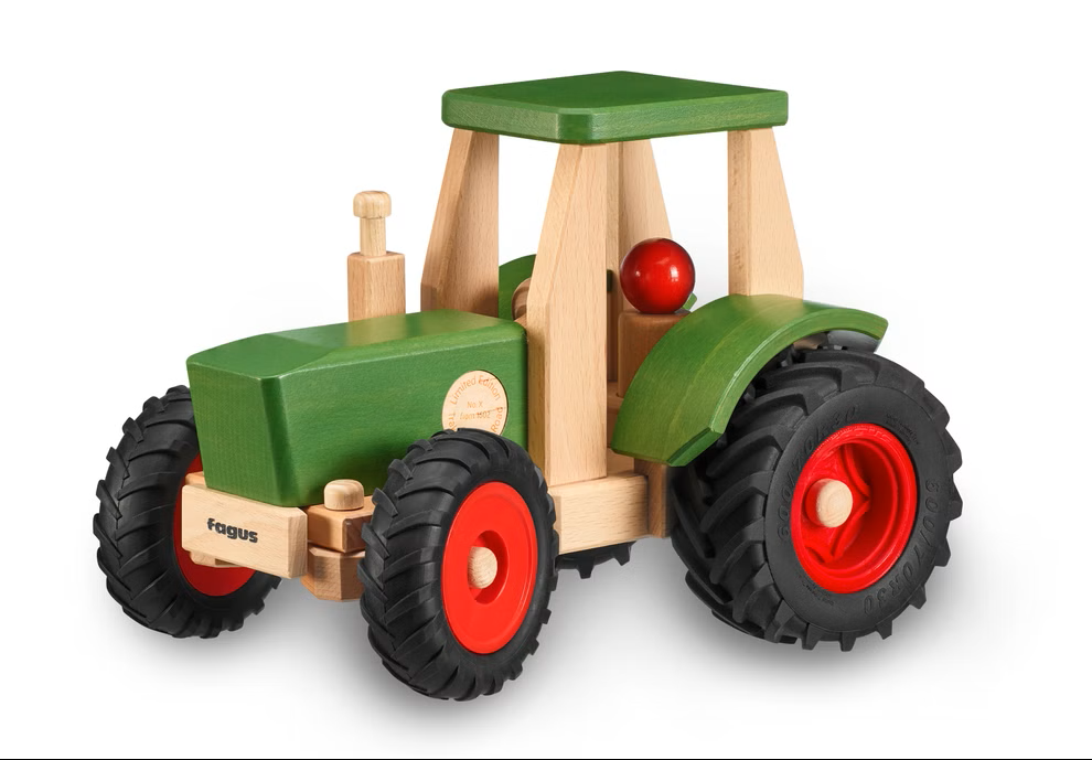 Say hello to the Fagus XXL All-Road Tracator! This limited edition version features something never seen before from Fagus: a beautifully painted green finish that adds a whole new level of excitement to farmyard play. Designed for play indoors and out, this rugged wooden tractor is built to last and ready to roll through dirt, sand, or any terrain your little one dreams up.