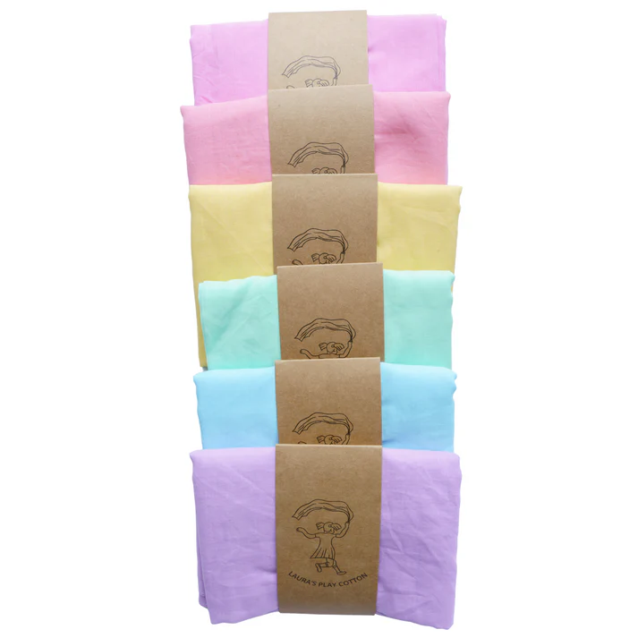 Laura’s Play Cotton, choose organic cotton for its superior quality and ethical sourcing. their organic cotton play cloths are crafted from sustainably grown cotton plants, ensuring that no harm comes to animals in the production process. With a soft and breathable texture, organic cotton is gentle on the skin, making it perfect for children’s playtime adventures.