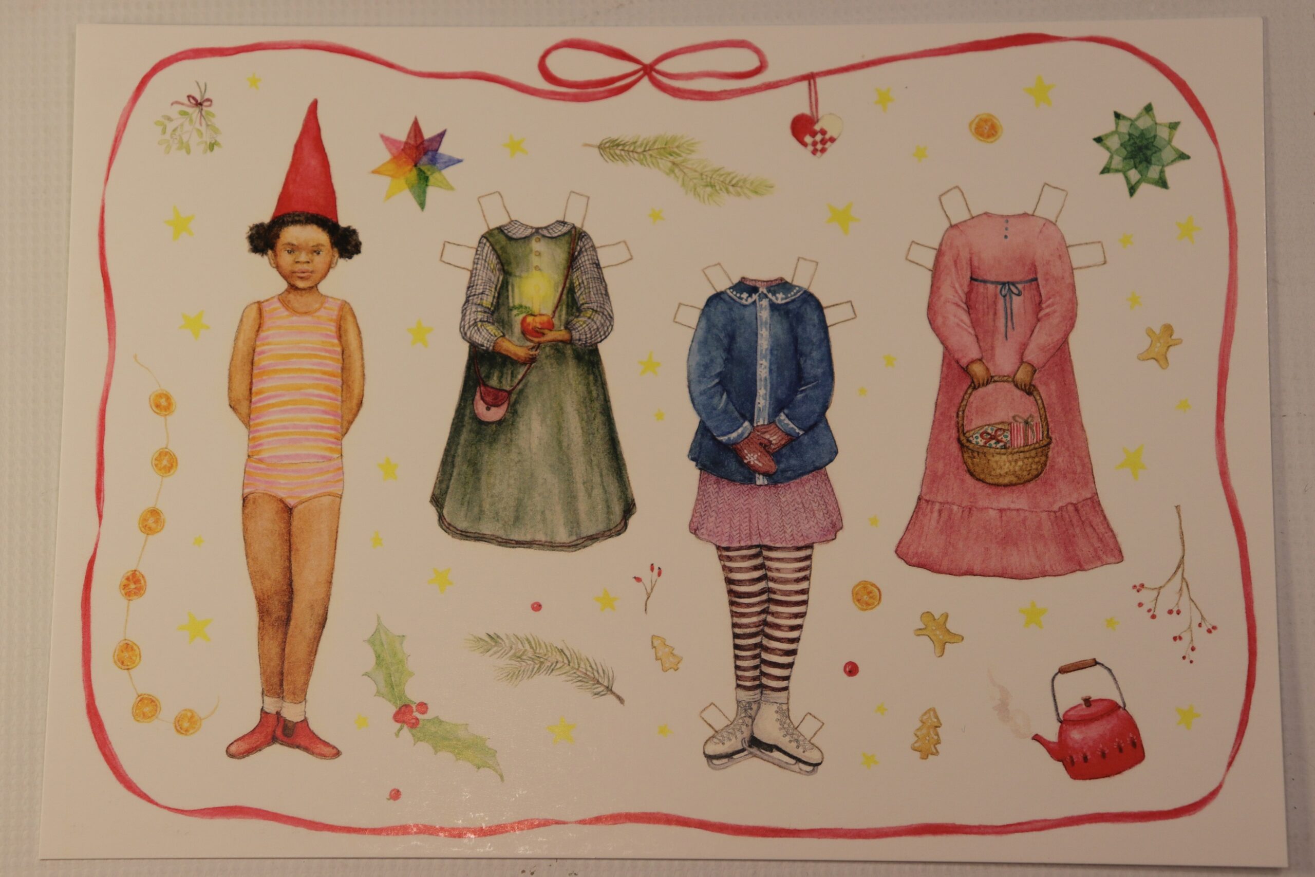 Postcard A5 by Mhairi Hellbrandt Paper Doll Girl Brunette