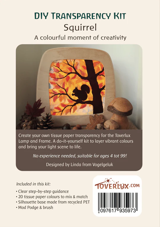 Create your own tissue paper transparency for the Toverlux lamp or frame. A do it yourself kit to layer vibrant colours and bring your light scene to life.